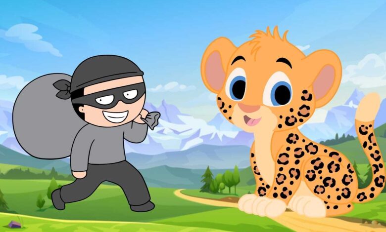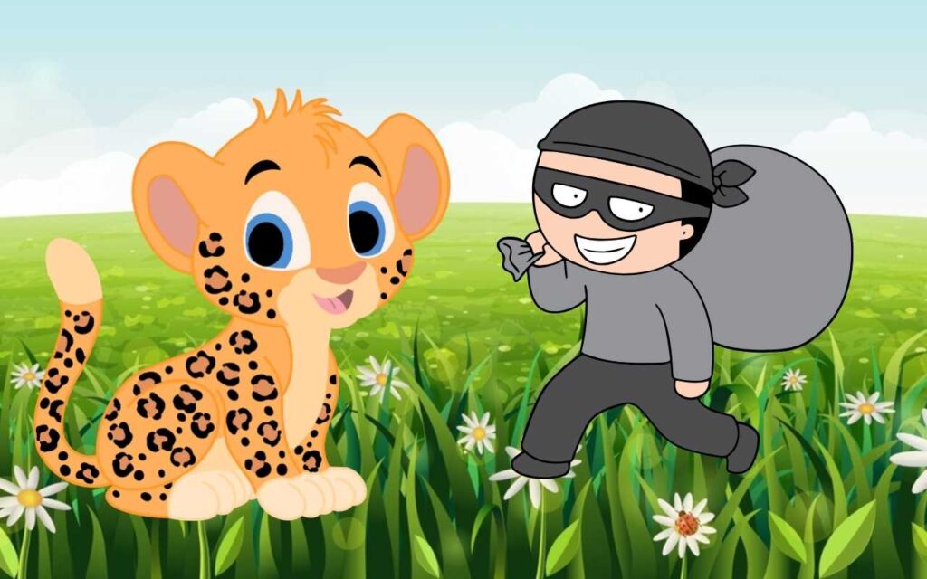 Bir zamanlar ormanın birinde bir ağaçta yaşayan leopar varmış. Bu leopar gündüzleri uyur, geceleri de avlanmak için hep uyanık kalırmış. Bu yüzden geceleri ağacının dalına uzanıp ormanda ne olup bittiğini izlermiş. İşte böyle bir gecelerde ormana bir hırsız dadandığını böyle öğrenmiş. Hırsız her gece gelip ormanda çaldığı ganimetlerle birlikte geri dönermiş. Hırsız bir gece maymunun muzlarını, bir gece zebranın çizgilerini, bir gece aslanın yelesini çalmış. Hatta bir gece bir filin en değer verdiği dişini çalmış.