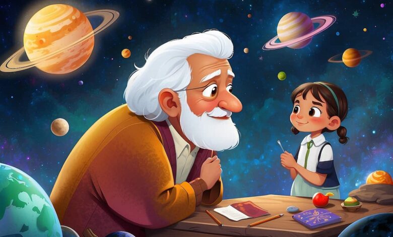 – Bu konu canını sıkacağın kadar zor değil torunum. O yüzden gülüyorum haline. Dinle beni güzel torunum anlatıyorum. Güneş sistemimizde sekiz gezegen vardır. Bu sekiz gezegenin her biri Güneş’e belli uzaklıkta kendi yörüngelerinde ve Güneş etrafında hareket ederler. Bunların Güneş’e olan yakınlıklarına göre sıralaması şu şekildedir: Merkür, Venüs, Dünya, Mars, Jüpiter, Satürn, Uranüs ve Neptün şeklindedir. Bu gezegenlerin hepsinin kendine has büyüklükleri ve yörüngeleri vardır. Yine bu gezegenlerin hepsi kendi yörüngeleri dışına çıkmadan Güneş etrafındaki hareketlerin kusursuz bir şekilde yaparlar. Bu sıralamadan da anlaşılacağı gibi Merkür Güneş’e en yakın gezegen, Neptün ise Güneş’e en uzak gezegendir.