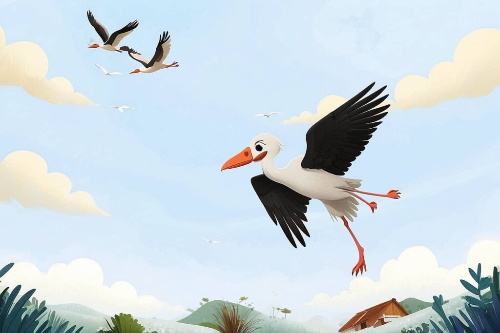 Bir gün soğuk bir bölgeden sıcak bir bölgeye göç eden leylekler ordusu gökyüzünde yola çıkmış. Rota, daha güneyi gösteriyormuş. Güneye doğru hareket ederken leyleklerden birisi hızını düşürüp en arka safta kanat çırpıyormuş. Bu leylek arkadaşları arasında tembel leylek olarak biliniyormuş. Tembel leylek kanat çırparak çok yorulmamak için daha da yavaşlamış.