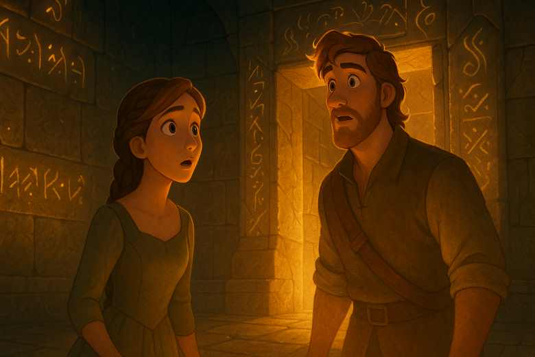 Elara haritadaki ipuçlarını takip ederek mabette gezindi. Arden da ona eşlik ediyordu. “Bu yazılar çok eski” dedi Elara. “Bin yıl önceki Bilgelik Çağı’ndan kalma.”