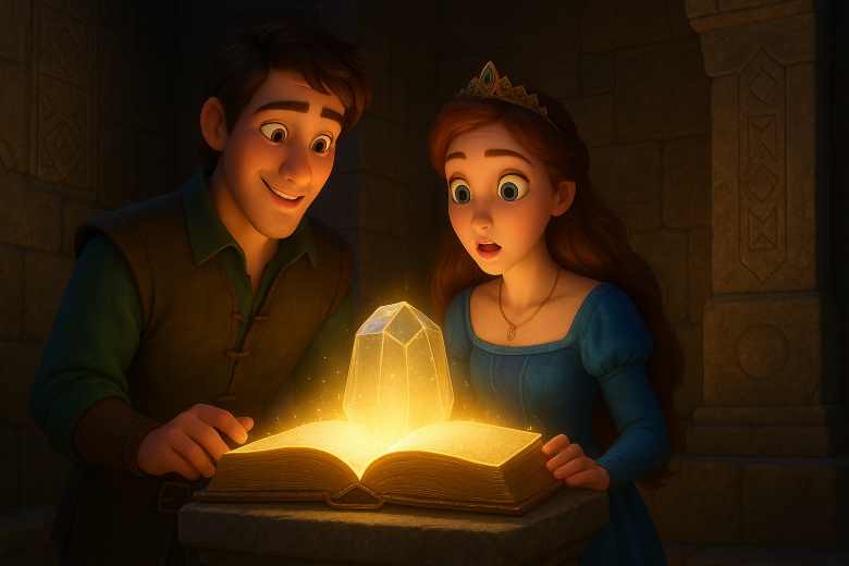 Haritanın gösterdiği yere geldiklerinde, yerde garip desenlerle süslenmiş bir taş buldular. Elara kitaplardan öğrendiği büyülü kelimeleri söyledi. Taş yavaşça hareket etmeye başladı ve altından gizli bir geçit çıktı.