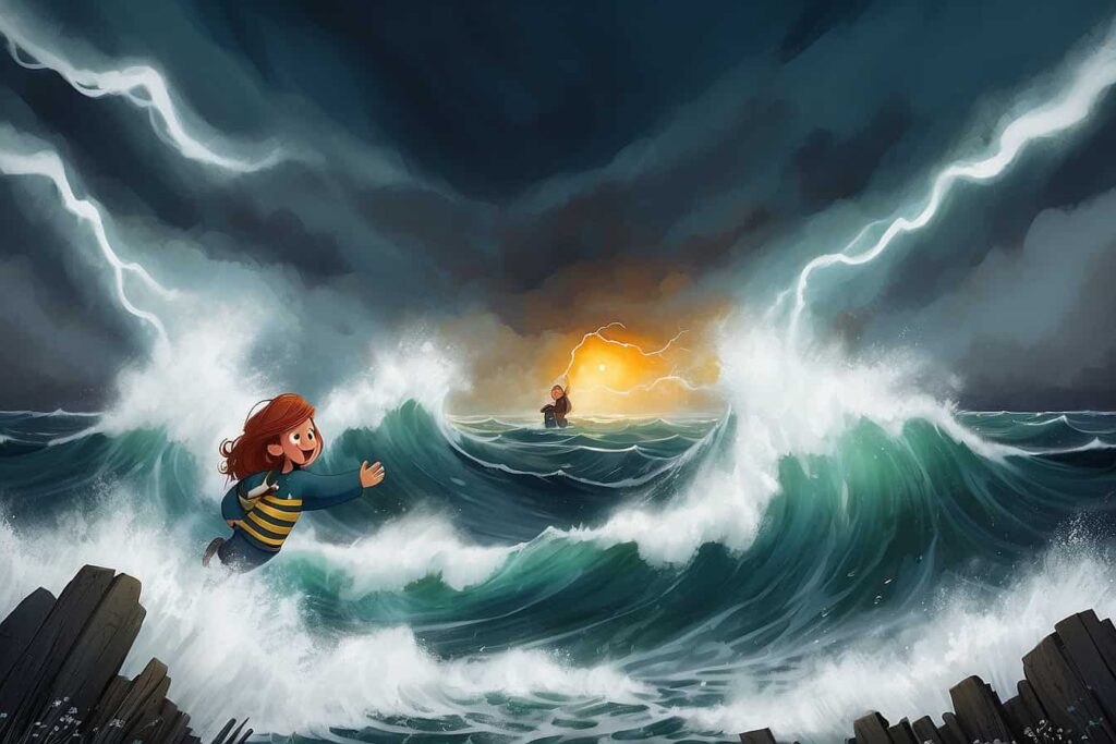 Günlerden bir gün, denizi alabora eden büyük bir fırtına çıkmış. Bu devasa fırtına önüne çıkan her şeyi alıp götürüyormuş. Fırtına esnasında kulübesine çekilen adam, fırtınanın kulübesine zarar vermesinden korkmuş. Dışarıda sanki kızılca kıyamet kopuyormuş. Gün birden kararmaya ve Güneş o diyarları terk etmeye başlamış. Yalnız adam, kulübesinin bir köşesine çöküp başını ellerinin arasına almış. Sessizce fırtınanın dinlemesini beklemeye koyulmuş.
