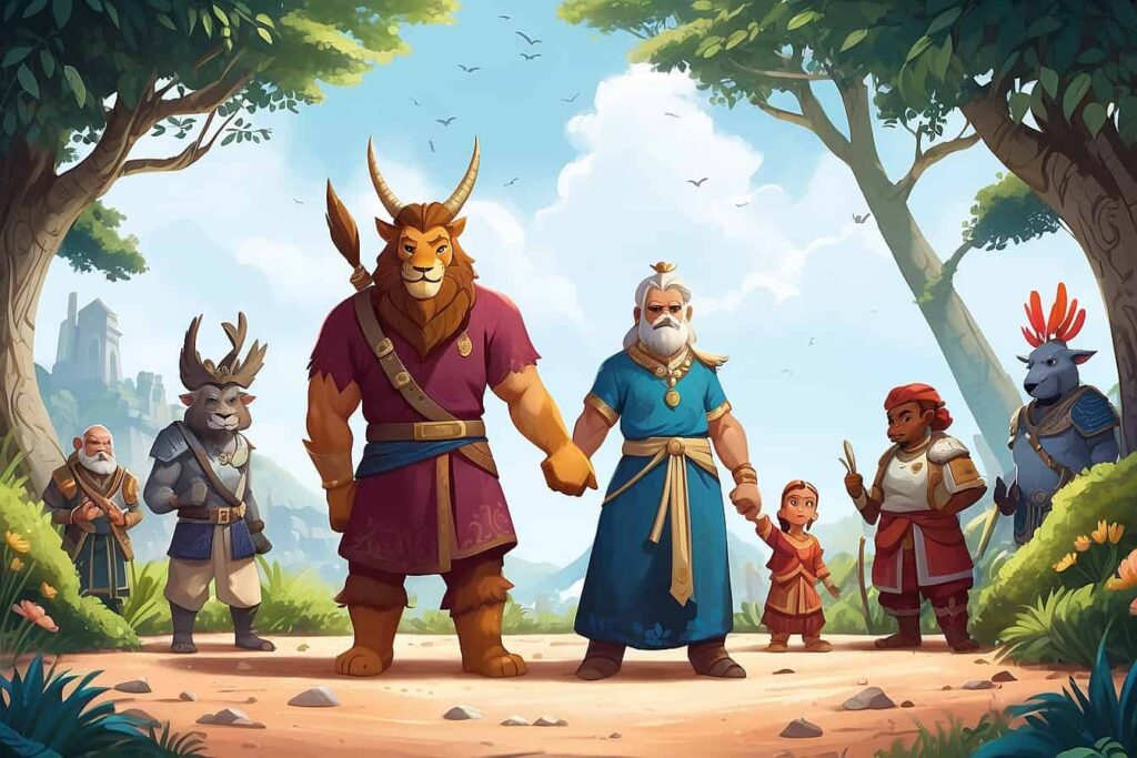 Uzak diyarların birinde aslan, eşek ve tilki yaşarmış. Her biri kendi krallığında prens olarak hüküm sürermiş. Ayrıca çeşitli özellikleri bulunurmuş. Aslanın cesareti, eşeğin gücü ve tilkinin kurnazlığı varmış. Her biri bu özellikleri ile tanınırmış.