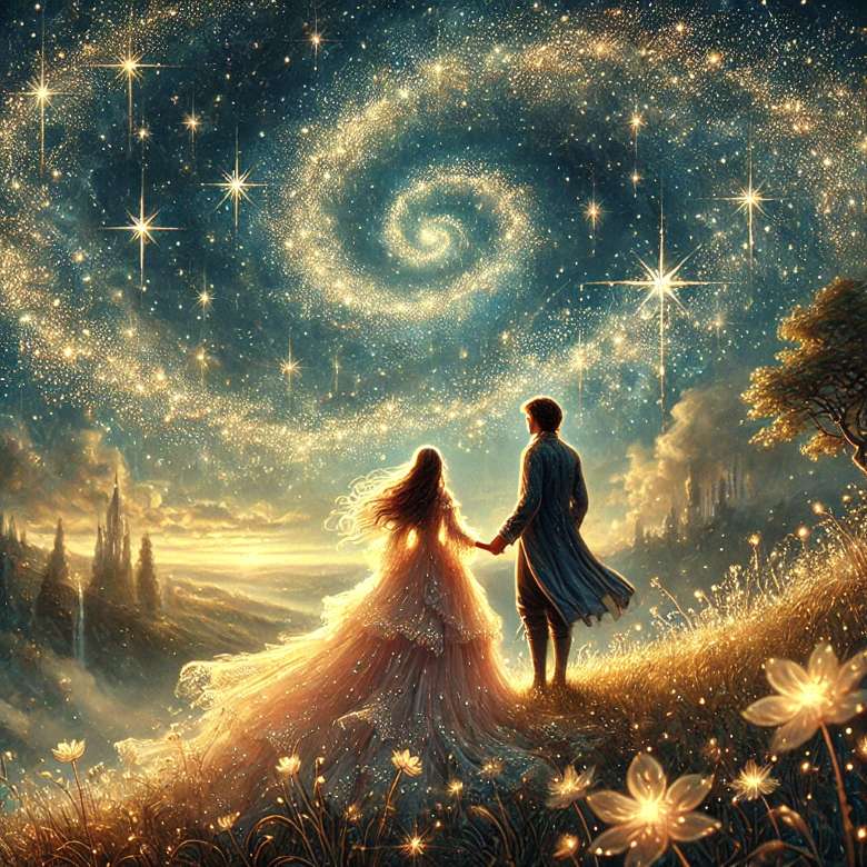 Çok uzak diyarlarda, gökyüzünün lacivert kadife örtüsünün altında, iki yıldız varmış. Bu yıldızlar gecenin karanlığında birbirlerine bakar, birbirlerini seyrederlermiş. Gökyüzünün farklı köşelerinde doğmuş, farklı takımyıldızların içinde büyümüşler.