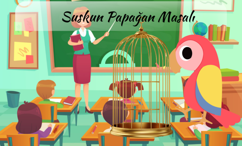 Okulun birinde sarı ve mavi renkte tüyleri olan güzel mi güzel bir papağan varmış. Okulun girişinde herkesin görebileceği bir köşede genişçe bir kafesin içinde yaşarmış. Okulun öğrencileri papağanı çok sever ve onunla vakit geçirmeye bayılırlarmış. Fakat papağan oldukça sevimli olmasına rağmen derin bir sessizliğe bürünmüş. Bu yüzden hep ismi Suskun Papağan olarak kalmış.