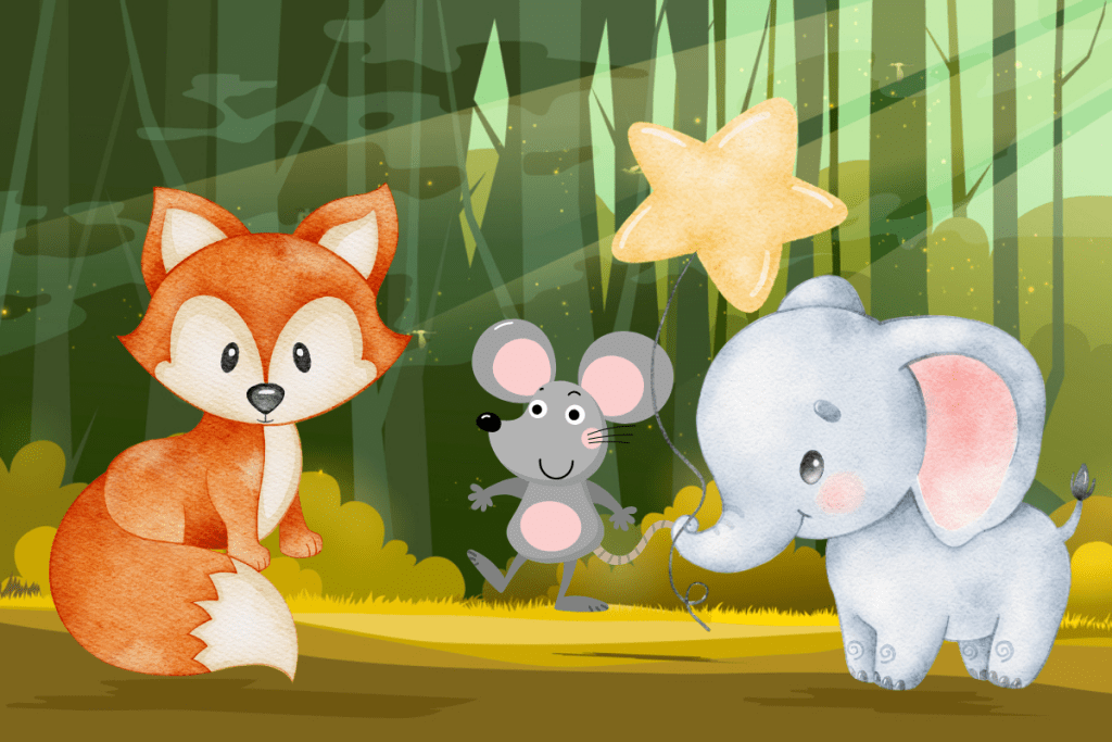 Tilki, diğerlerine sürpriz yapmak istemiş ve onları lezzetli meyvelerle dolu bir piknik için davet etmiş. Fare ve fil bu güzel düşünceye sevinçle karşılık vermişler. Önceden belirlenen yere doğru yola çıkmışlar.